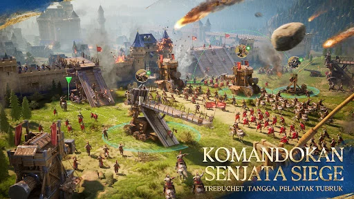 Selain hero, senjata pengepungan memberi dimensi taktis lebih dalam. Trebuchet cocok untuk meruntuhkan bangunan dari jarak aman, menara serbu membantu menerobos pertahanan, sementara ram efektif menghancurkan gerbang. Dalam skenario nyata, kombinasi hero plus siege yang tepat bisa menentukan hasil kemenangan meski menghadapi kota dengan pertahanan kuat.