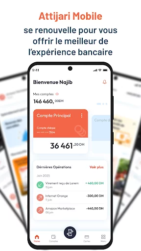Account management is a core part of Attijari Mobile. Users can check current and savings accounts, review transaction history, and keep an eye on spending patterns without delays. This setup helps users stay aware of their money flow and catch unexpected movements early.