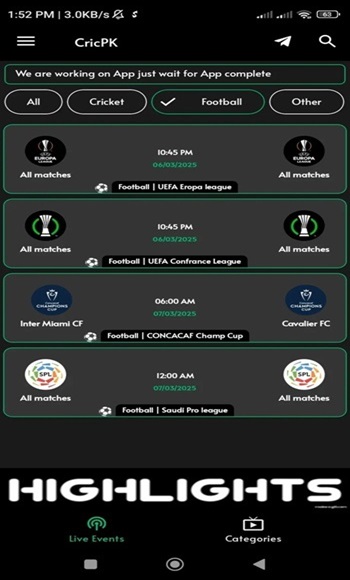 Performance is where this app shines. It uses multiple streaming servers to keep matches running smoothly, even when traffic spikes during finals or derby games. The adaptive streaming adjusts automatically to your internet speed, which means users on 3G or 4G networks can still watch without constant buffering.
