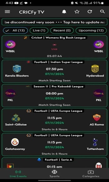The interface is minimalistic and easy to use, with categories for live matches, highlights, and sports channels. Another useful addition is the pop-up player mode, which allows you to keep the match running while texting or browsing. Compared to apps filled with ads or sudden crashes, it feels polished and reliable.