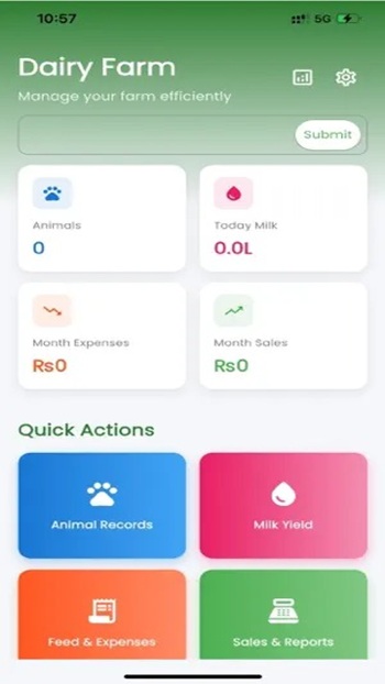 Users can record milk output, animal details, feeding inputs, expenses, and sales, then review trends through simple reports. -