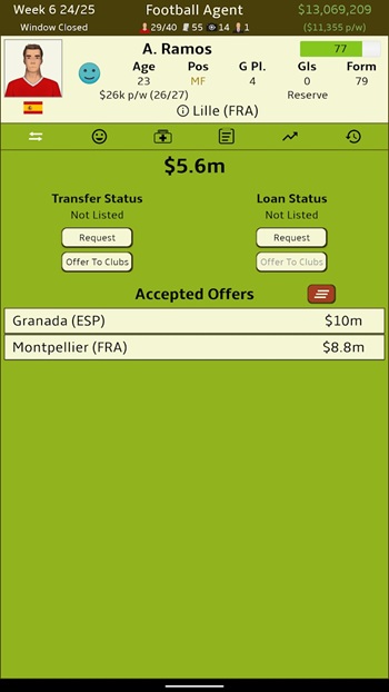Football Agent is a football-themed management game focused on the business side of the sport, made for players who like strategy, planning, and decision-making rather than live matches. The goal is simple: represent football players, secure profitable contracts, and grow a successful agency while keeping clients satisfied.