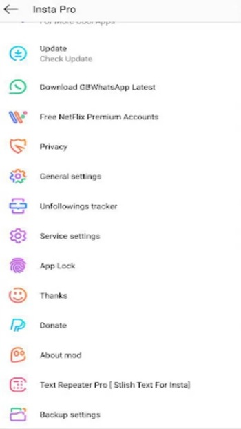 InstaPro is a customized Instagram app that lets users download photos, videos, and stories, adjust layouts, and enjoy an ad-free feed with better privacy and control over their profile.