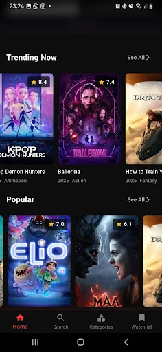 The app’s design strikes a perfect balance between modern aesthetics and lightweight performance. It’s crafted for Android users who want a smooth, storage-friendly experience, with titles, posters, and ratings displayed clearly for easy reading. Despite its minimalist design, it offers the depth film enthusiasts appreciate, giving detailed insights into every title. Even on budget phones, it performs seamlessly — proof that a well-optimized app doesn’t need to compromise power for accessibility.