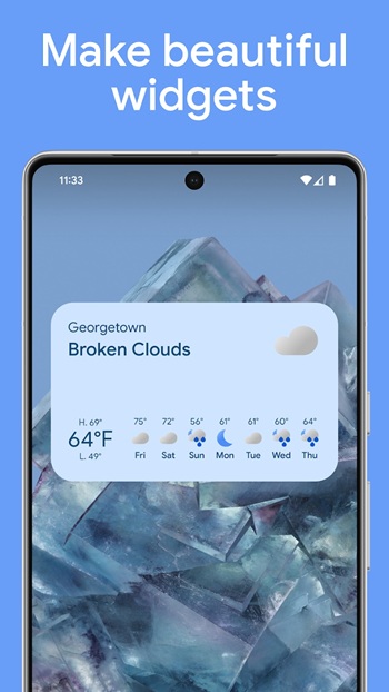 Pixel Weather takes care of the visual formatting, so your widget layout stays clean instead of cluttered. Most users place it next to a compact temperature label or a small date line to keep everything quick to read. Someone heading out for school or work can check their screen and figure out what to wear in seconds. The same goes for planning a weekend hangout—those clear icons make it easy to gauge the weather without opening another app.