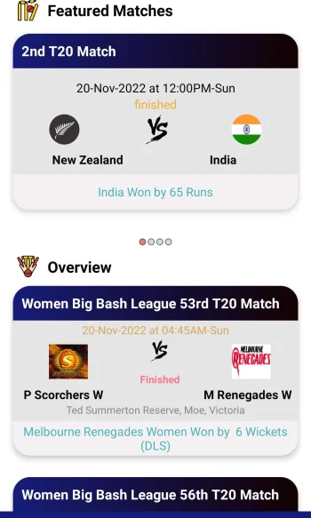 Another part of the app centers on match schedules and team details. Users can check fixtures, match times, venues, and playing squads ahead of time. Player information and team lineups help fans track form and stay informed before matches begin.