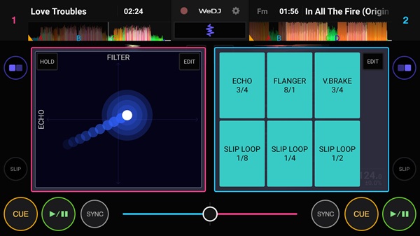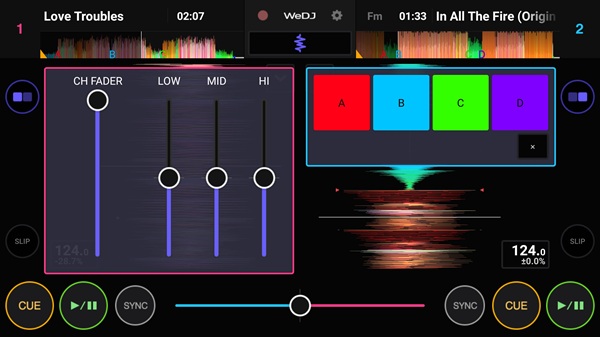 WeDJ is a DJ mixing app that lets beginners and casual mixers blend tracks, sync beats, add effects, and record clean mixes using music stored on their device with controls and flexible layouts.