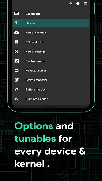 Aplikasi ini juga menyediakan pengaturan kernel untuk perangkat yang sudah memiliki akses root. Pengguna dapat menyesuaikan frekuensi CPU dan GPU, mengatur manajemen memori, serta mengelola proses latar belakang agar pemakaian daya lebih seimbang sesuai kebutuhan harian.