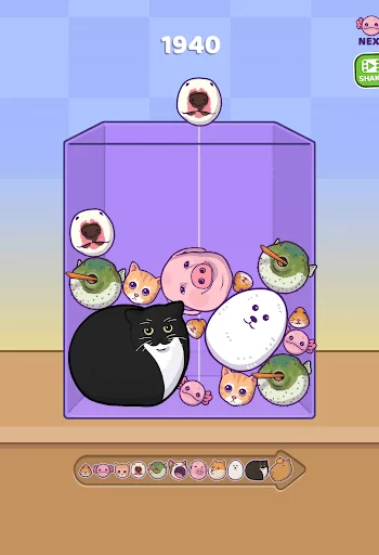 Dalam permainan, karakter berupa hewan dan meme akan turun dari bagian atas layar. Pemain perlu mengetuk area tertentu agar karakter jatuh di posisi yang tepat. Jika dua karakter dengan bentuk sama bertemu, mereka akan berubah menjadi versi yang lebih besar. Pola ini terus berulang sampai ruang di dalam wadah terlalu penuh. Sistem ini memaksa pemain berpikir cepat namun tetap santai, cocok untuk sesi singkat tanpa tekanan berat.