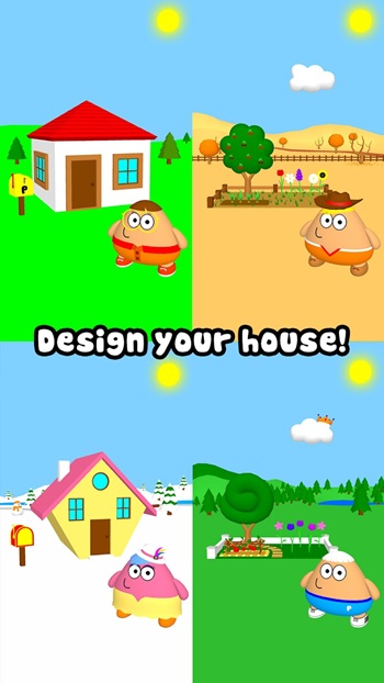 Customization plays a big role in keeping things personal. Players can dress Pou with different outfits and accessories, then adjust room colors, furniture, and outdoor areas to match their style. These tools let users shape a space that feels familiar rather than decorative.
