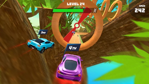 Progression is tied to finishing races and placing well against AI rivals. Winning earns in-game currency that can be used to upgrade speed, handling, and acceleration. These upgrades help players deal with tighter tracks and faster opponents as difficulty scales.
