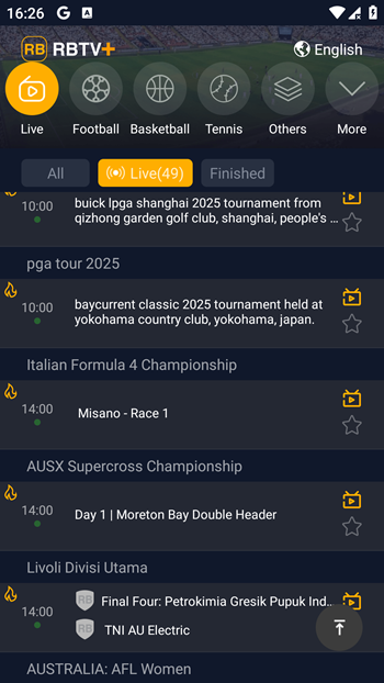 Di dalam RBTV, pengguna bisa mengikuti berbagai cabang olahraga populer seperti sepak bola, basket, tenis, hingga balap. Setiap pertandingan biasanya dilengkapi informasi pendukung seperti jadwal, skor langsung, dan pembaruan singkat yang membantu pengguna tetap up to date tanpa harus pindah aplikasi.