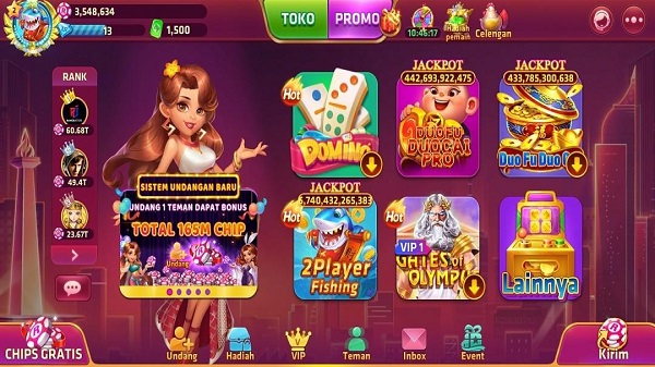 Banyak pilihan! Ada domino, QiuQiu, Rummy, sama game tembak ikan yang bikin adrenaline naik. Grafisnya kece, gameplay-nya asik, cocok buat ngisi waktu luang atau nostalgia sama permainan lokal! -