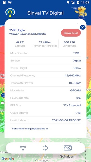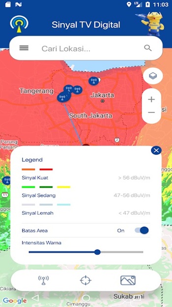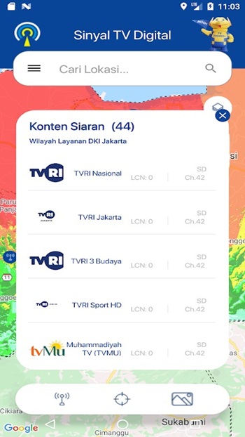 Cara kerjanya cukup simpel. Setelah dibuka, aplikasi langsung membaca lokasi pengguna lalu menampilkan peta cakupan siaran. Dari situ, warna-warna indikator memberi gambaran cepat soal kualitas sinyal di titik tersebut. Pendekatan ini memudahkan pengguna melihat kondisi nyata tanpa perlu perangkat tambahan.