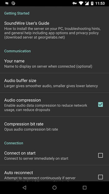SoundWire also has low-delay playback settings, which can help when watching videos or movies while listening through a mobile device. Users can adjust the buffer size inside the app to balance smoother audio with faster response.