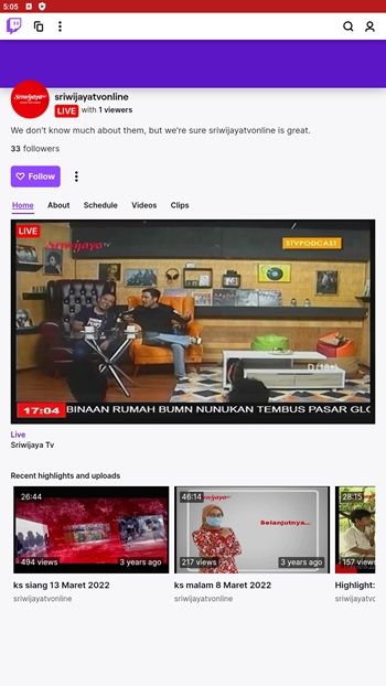 Sriwijaya TV adalah aplikasi tontonan lokal yang fokus pada berita daerah, acara komunitas, dan program khas yang biasanya cuma muncul di stasiun TV lokal. Aplikasi ini ditujukan untuk pengguna yang ingin mengikuti kabar harian dari daerah asal tanpa perlu duduk di depan TV konvensional. Banyak perantau dan warga kota kecil memakai aplikasi ini buat tetap tahu apa yang lagi ramai di lingkungannya.