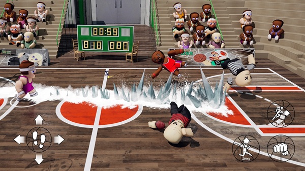 Gameplay is simple to understand but tricky to master. Players rush the court, take shots, avoid pressure, and collect Power Charges that appear after scoring. These charges fill a meter that lets the character fire a heavy Power Shot, which can knock down rivals and create space during intense moments.