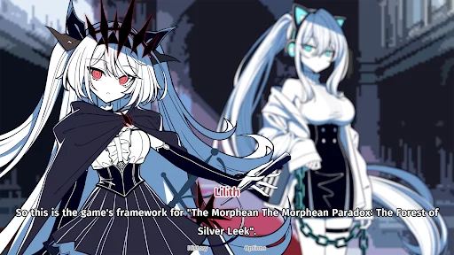 Game naratif selalu bertumpu pada karakternya, dan The NOexistenceN of you AND me memaksimalkan aspek itu. Lilith muncul sebagai karakter yang dialognya nggak bisa ditebak. Kalimatnya lebih mirip cermin yang memaksa pemain ngadepin pikirannya sendiri. Lalu ada Sartre, peneliti mandragora dengan sudut pandang unik yang bikin suasana jadi sedikit absurd tapi tetap relevan dengan tema besar ceritanya.